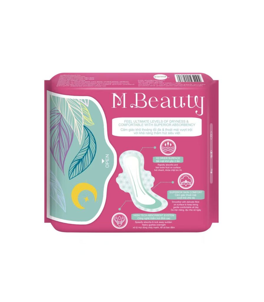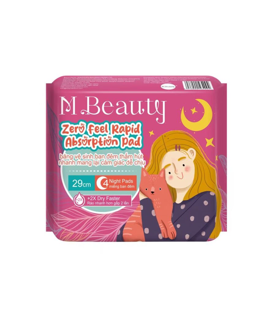 Mbeauty 29cm night‑use sanitary pad combines medical‑grade standards, ultra‑thin design, and high‑tech absorbent performance to deliver reliable, gentle protection after dark. Made under strict hygienic and safety criteria, it meets professional medical‑grade requirements for sensitive skin, ensuring cleanliness, low irritation, and trustworthy daily care.